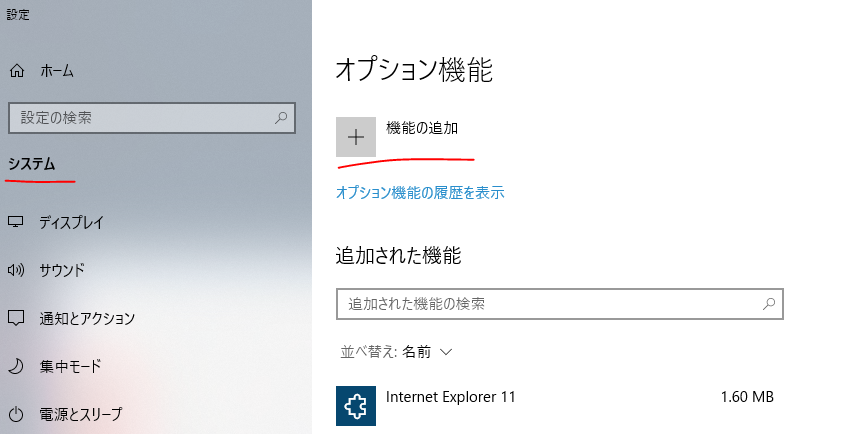 「システム->オプションの構成->機能の追加」